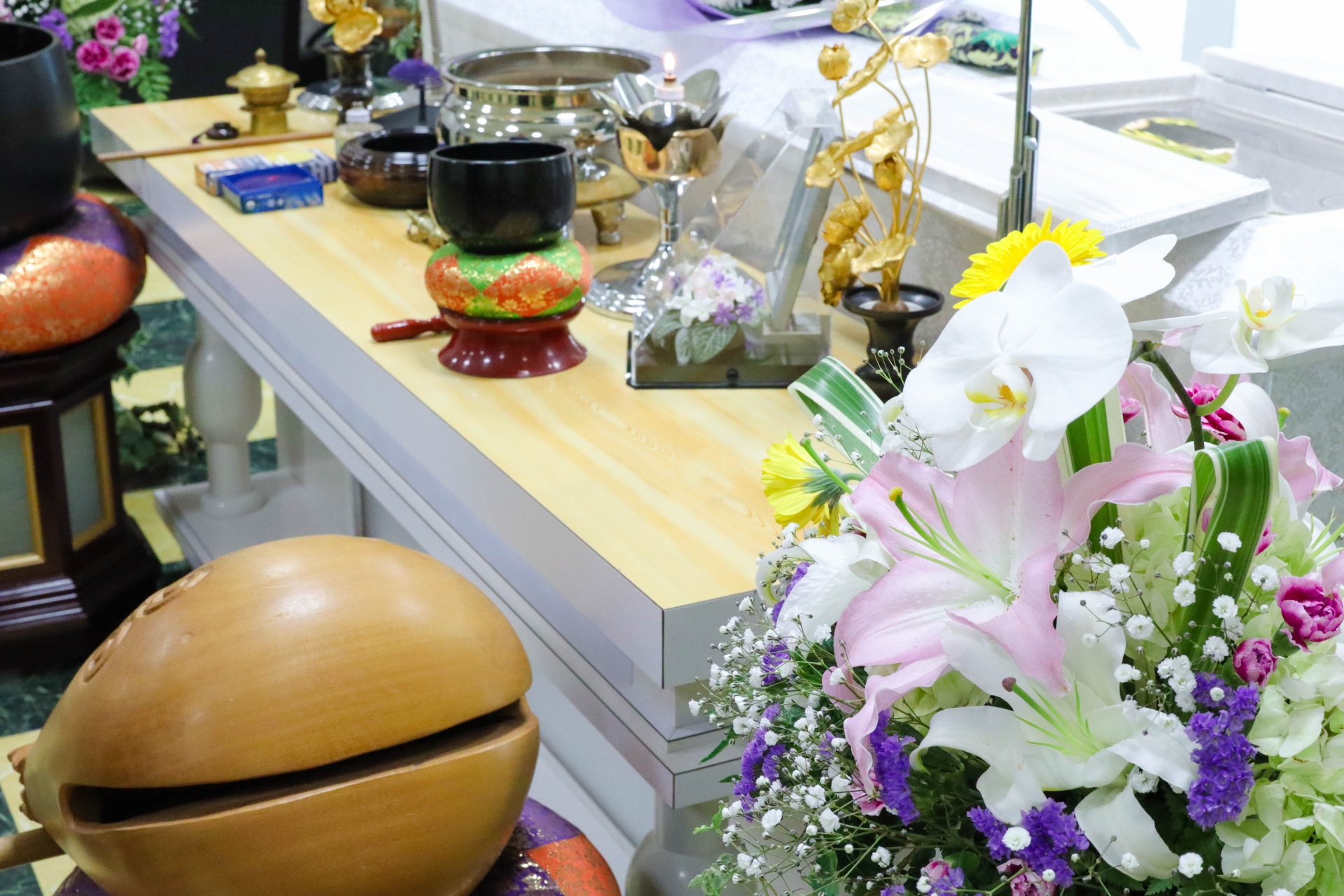 ご自宅や安置室に搬送と、枕飾りなどの設置を行います。